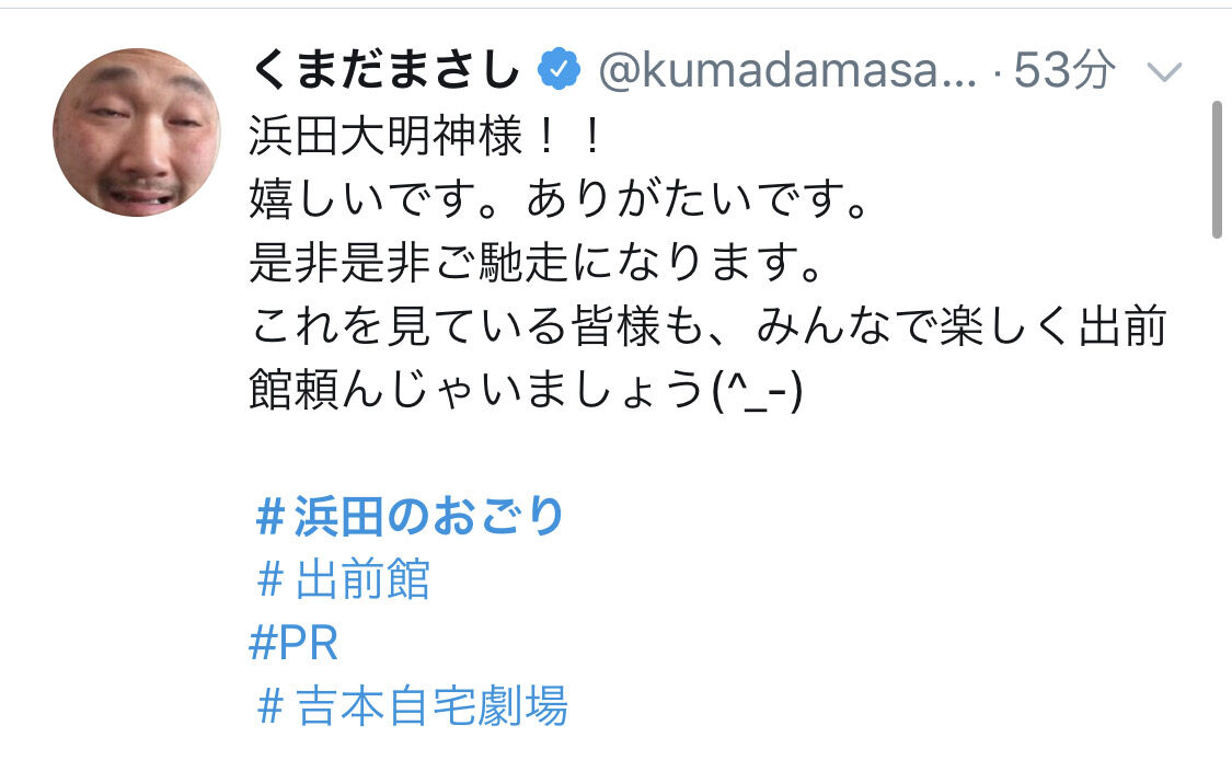 出前館の宣伝にもなるし飲食店の宣伝にもなるし芸人の生存確認点呼になるしハマタ天才やろ