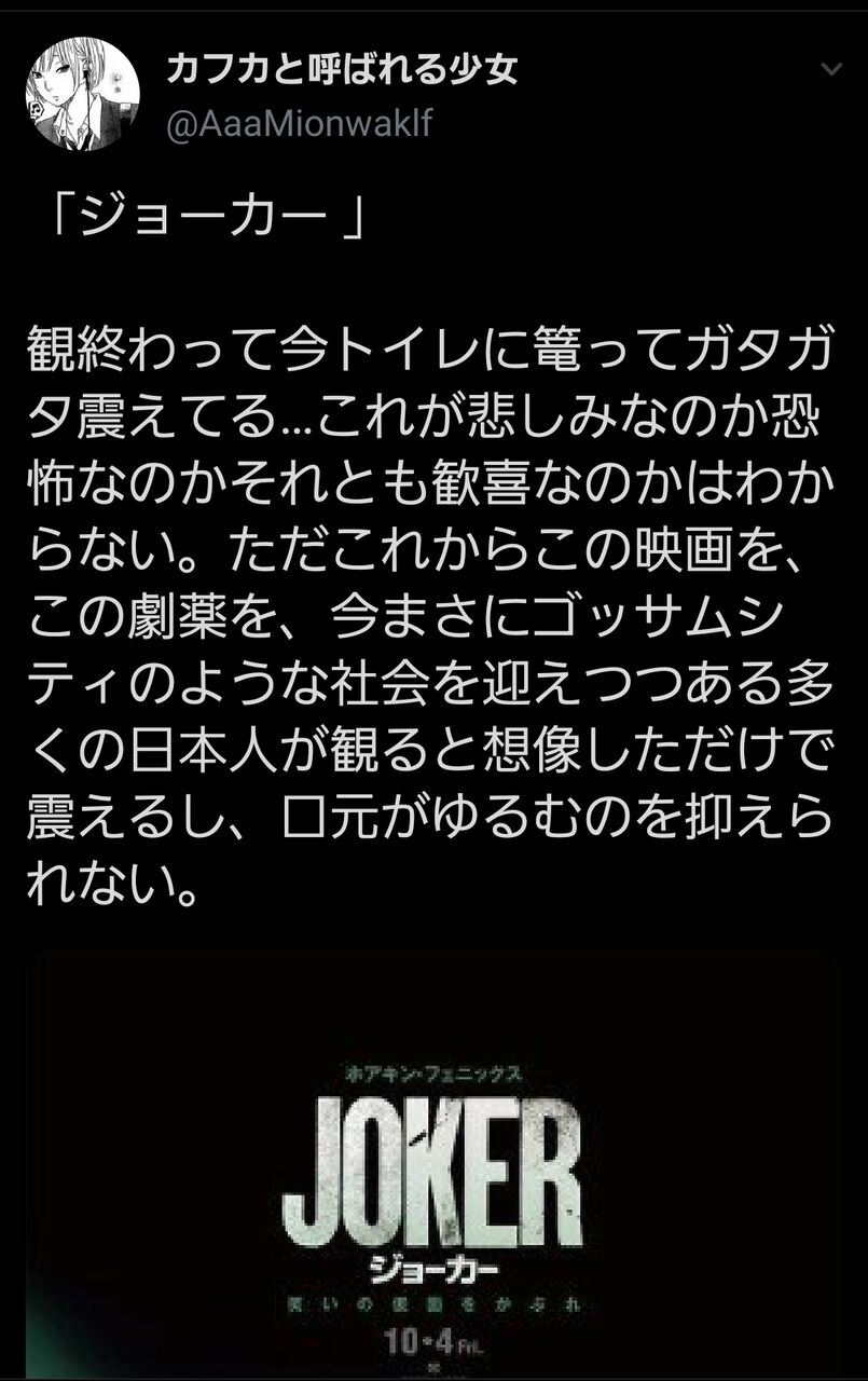 ジョーカー見たやつのくっさい感想垂れ流す率は異常だったぞ