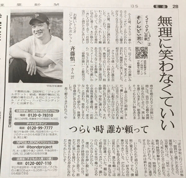 ジャンポケ斎藤も死ぬほどいじめられたとかあったもんな