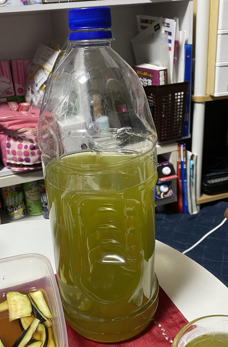 なるほど。少し減った焼酎のペットボトルの中に緑茶を入れてしまえば、楽々緑ハイ出来る!どんどん自宅飲酒知恵がついてきた!パワーアップ!
