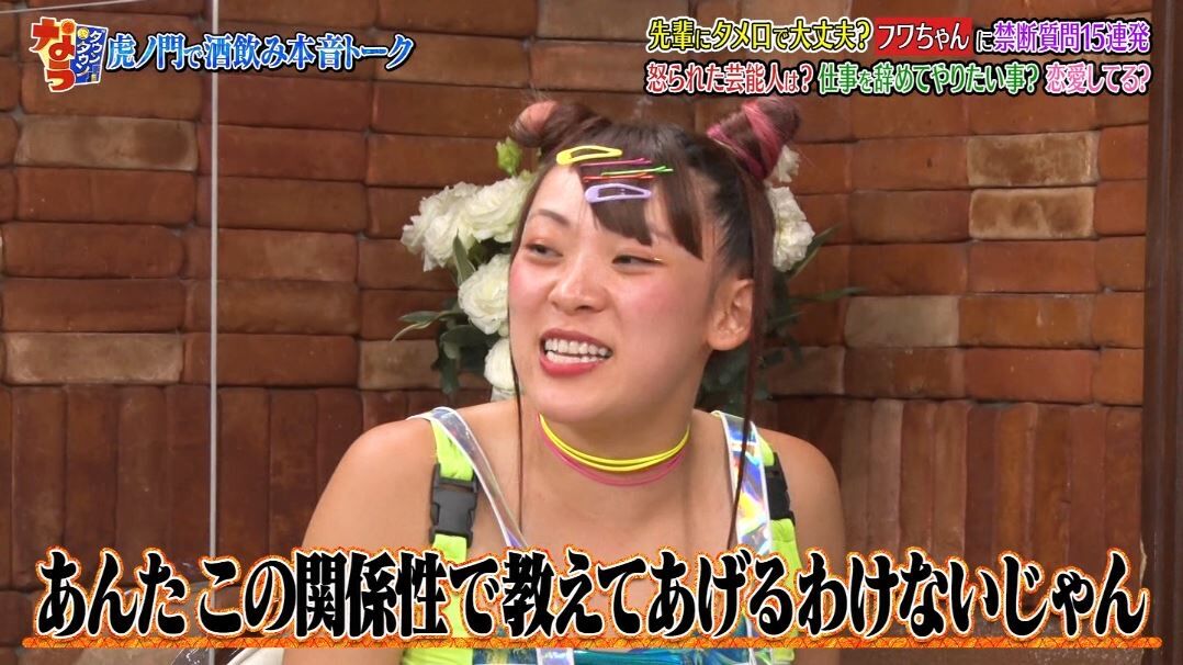 松本が若槻に対し、「フワちゃんはどんな感じで見てるの?」と聞いたところから、「長く続くと思います」(若槻)、「頭いいよね」(松本)、「年下なのに年下の感じがしない。さっしー(指原莉乃)と同じ感覚でしゃべれる」(若槻)というトークが繰り広げられた。
