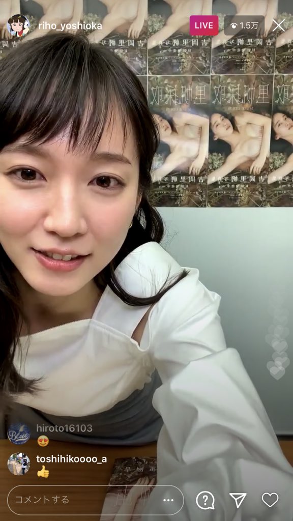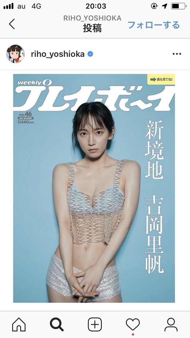 「吉岡は8日、バストラインがクッキリと浮き出た白の衣装でインスタライブを配信。そのオープニングで、写真集を手がけた清川氏がリモートで登場したのですが、相手の音声が小さかったからか、吉岡はカメラ正面のスピーカーに顔を近づけてトークすることとなりました。すると、前かがみのポーズになった彼女の豊かなバストが、机の上に丁度乗っかり、まるで持ち上げられているかのような状態となったのです。これには、一部ファンの間で『エッッ!艶すぎる!』『良いバストの日(11月08日)に相応しい配信だ』『やっぱり里帆ちゃんは、艶っぽさがハンパない』といった絶賛の声が飛び交いました」(前出・芸能記者)