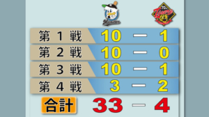 第1戦も5-1だったが、第2戦はそれも上回る一方的な展開。SNSなどネットで散見されるのが「これじゃ本当に33-4を超えちゃうよ」「33-4まであと○○」といった投稿、コメントだ。