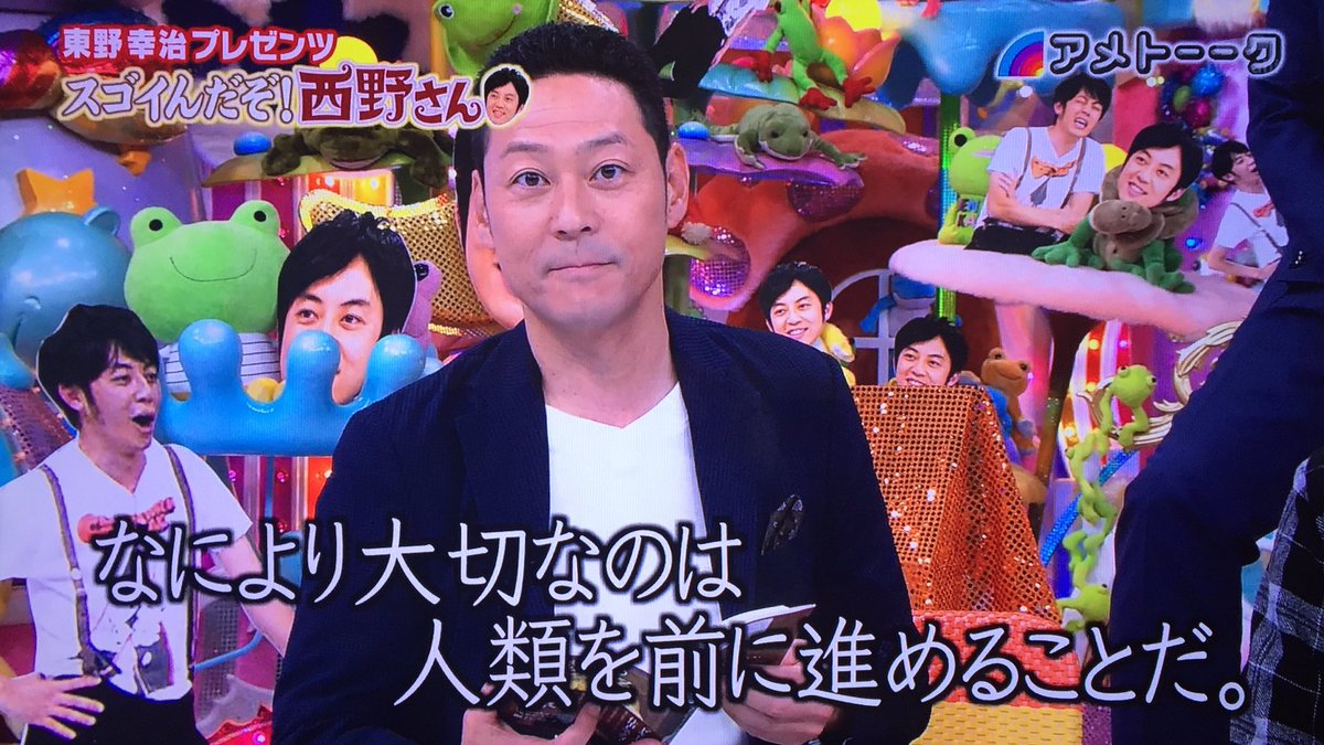 (西野亮廣)いちばん嫌な回がやってまいりました。本当に、幸せに40回ぐらい、ずーっと(この番組は)すごしてきたのに、今日のゲストは本当に嫌なんですよ、僕は(笑)。自分のペースではできないんだろうなと思っております。さあ、それでは今夜のゲストをお呼びしましょう。東野幸治さんです。よろしくお願いします。