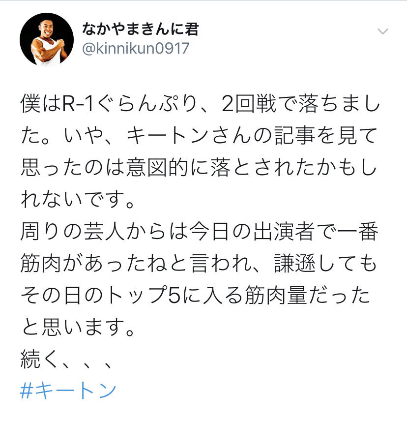 もっとも大会当事者からも不満が。出場資格の変更で出場できなくなったおいでやす小田は、控室のレポーターとして登場。しかし、タイムスケジュールの問題で中盤から出番がなくなり、終盤に「俺、いらんやろ!」とキレ気味に叫んだ。