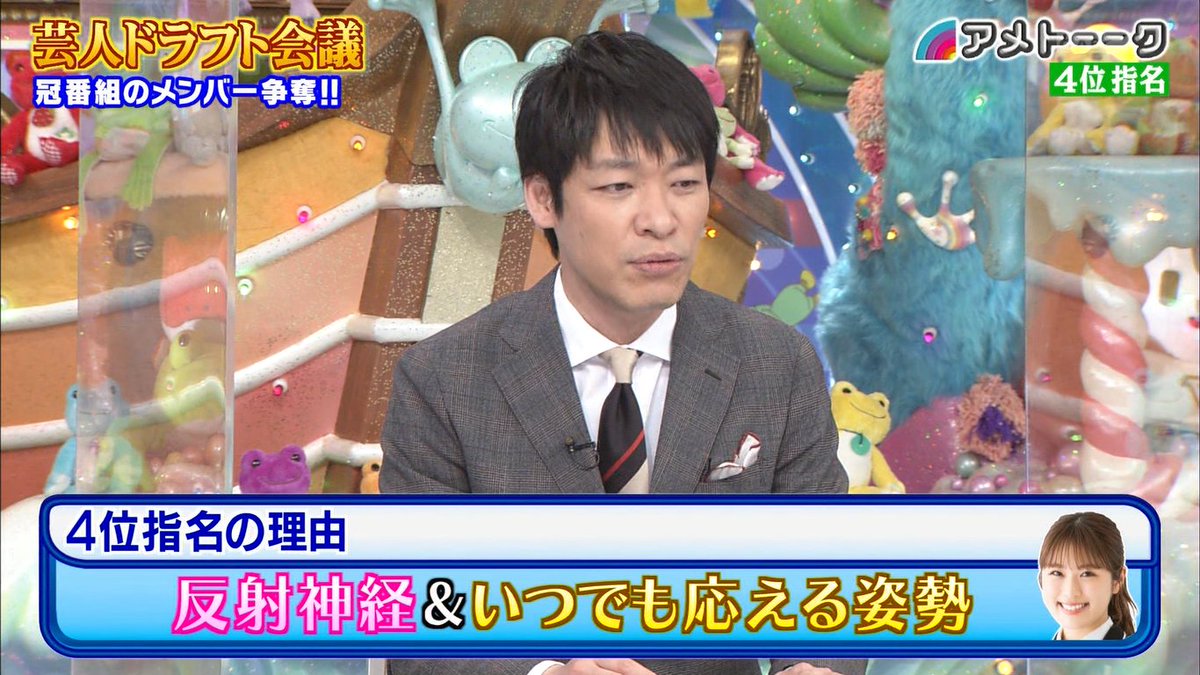 3月25日放送『アメトーーク!』(テレビ朝日系)の恒例企画「芸人ドラフト会議」内で麒麟の川島明が4位に渋谷を指名。
