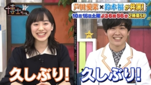この日は、博士ちゃんとして鈴木が登場。「大谷翔平“本当のヤバさ”」について授業。芦田との再会は3年ぶりで「『マルマルモリモリ』を2人で踊って歌ったのが最後だったと思うんですけど、その時は声変わりしきっていなかったんですよ。声変わりちゃんとしてから会うのは初めて」と明かした。