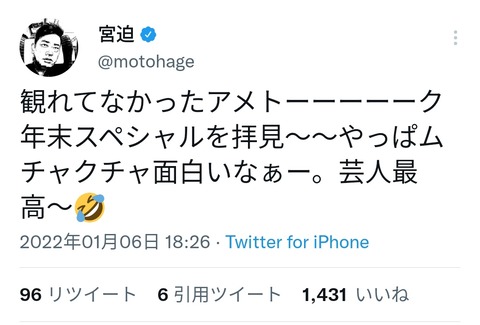 宮迫「アメトークやっぱムチャクチャ面白いなぁー。」