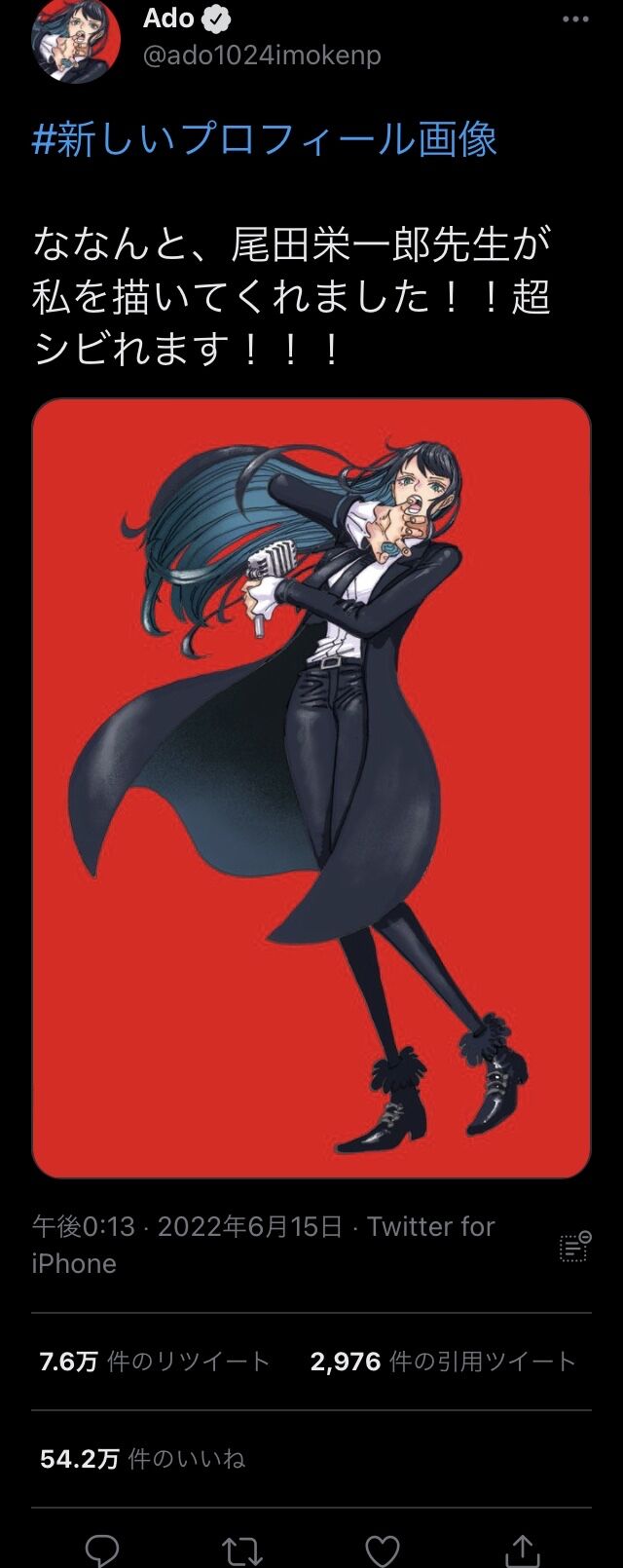 oda「ado描いたよ」→54万いいね