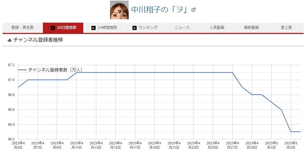 【悲報】中川翔子さん「チャンネル登録者が減ってるんだけど…」