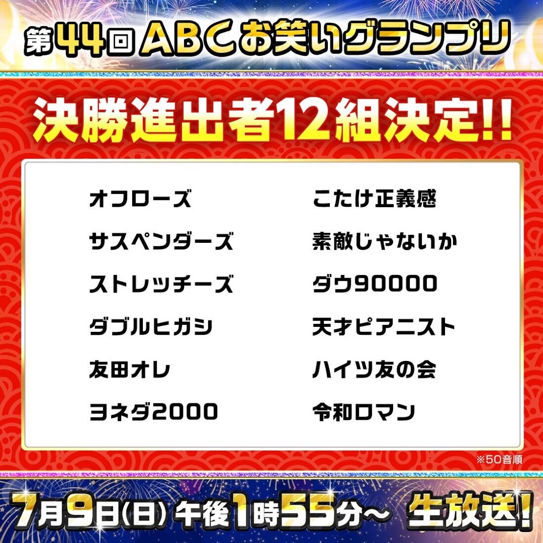 ABCお笑いグランプリのファイナリスト12組が決定!