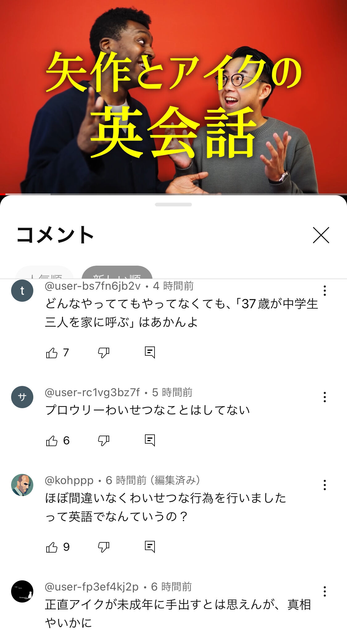 【悲報】YouTubeチャンネル「矢作とアイクの英会話」のコメ欄…