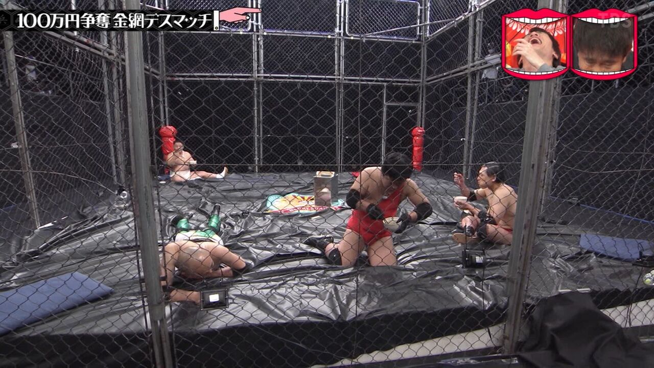 高さ5mの金網に囲まれた特設リングから、100万円が入ったボールを持って外に出ることのできた1人のみがその賞金を獲得できる…100万円争奪金網デスマッチ!この過酷な戦いに…オードリー春日、みなみかわ、あかつ、チャンス大城の4人が参戦!脱出して賞金を手にするのは誰だ!?