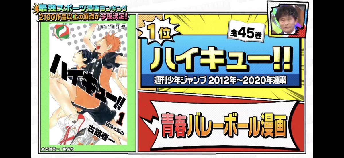 ジャンクスポーツのスポーツ漫画ランキングでスラムダンクじゃなくてハイキューが1位でおじさんたち発狂してたな