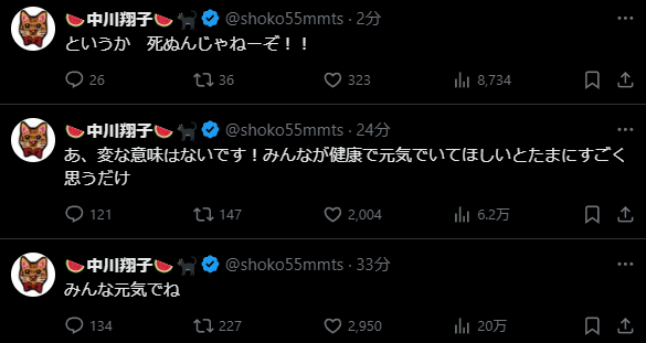 — 🍉中川翔子🍉🐈⬛ (@shoko55mmts) May 19, 2024
