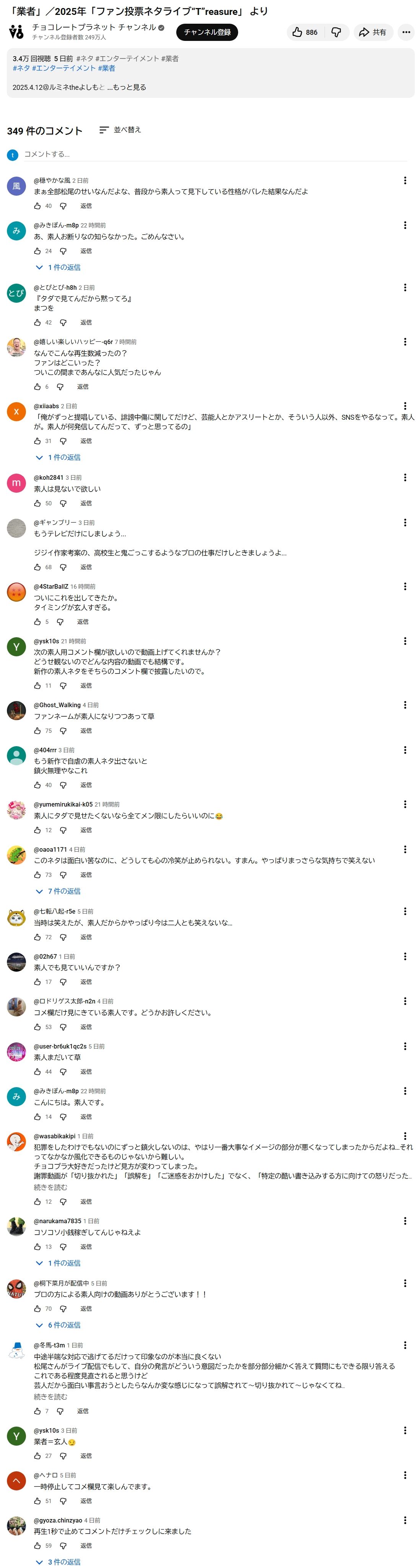 【画像】チョコプラの最新youtubeのコメント欄wwww