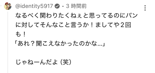 おめえまでパンと一緒に虚言吐きになるんじゃねえぞって